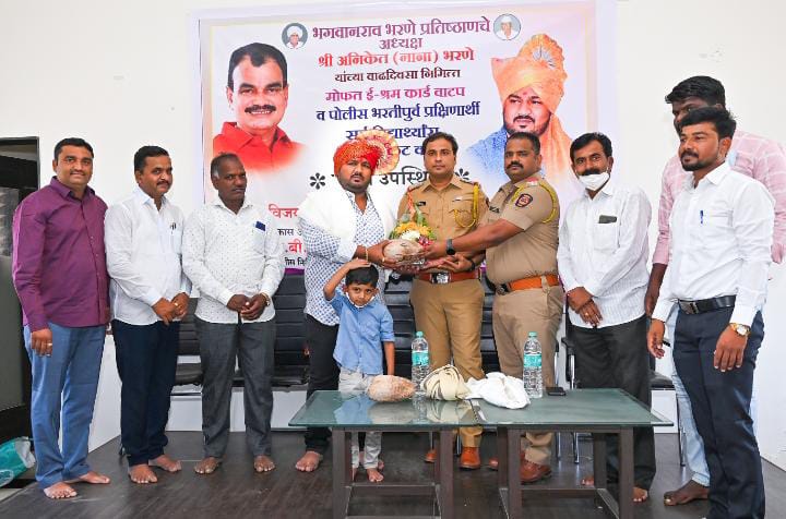 मोफत ई-श्रम कार्ड व पोलीस भरतीपूर्व प्रक्षिणार्थी विद्यार्थ्यांना किटचे वाटप
