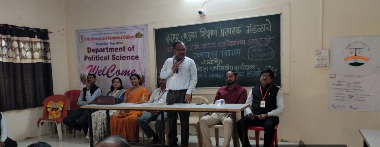 इंदापूर तालुका शिक्षण प्रसारक मंडळाच्या कला, विज्ञान आणि वाणिज्य महाविद्यालयाच्या, राज्यशास्त्र विभागाच्या वतीने भारतीय संविधानाच्या अमृत महोत्सवा निमित्ताने भारतीय संविधान या विषयावर एक दिवशीय कार्यशाळाचे आयोजन राष्ट्रीय सहकारी साखर कारखाना महासंघाचे अध्यक्ष व माजी मंत्री हर्षवर्धन पाटील तसेच महाविद्यालयाचे प्राचार्य डॉ . जीवन सरवदे यांच्या मार्गदर्शनाखाली आयोजित करण्यात आले होते यावेळी बोलताना विज्ञान विभाग प्रमुख डॉ. शिवाजी वीर यांनी वरील मत व्यक्त केले.