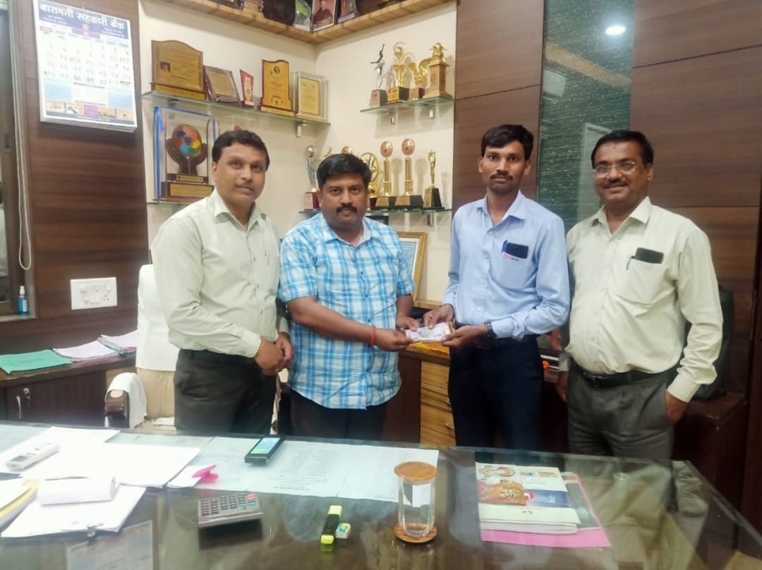बारामती एमआयडीसी मधील आय एस एम टी कंपनीचे कर्मचारी अमोल भानुदास थोरात यांच्या प्रामाणिक पणाचे कौतुक बारामती सहकारी बँकेने केले आहे.
