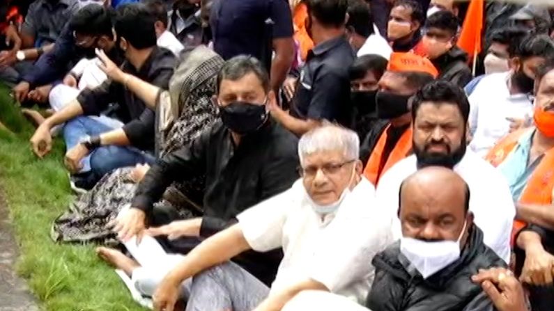 आज सकाळी 8 वाजल्यापासून हजारो मराठा आंदोलक छत्रपती शाहू महाराजांच्या समाधीस्थळी जमा झाले. त्यानंतर 10 वाजता वंचितचे नेते प्रकाश आंबेडकर यांनी शाहू समाधीचं दर्शन घेऊन आंदोलनात भाग घेतला. त्यानंतर संभाजी छत्रपती यांनीही शाहू महाराजांच्या समाधीस्थळी येऊन दर्शन घेतलं. संभाजी छत्रपती आल्यानंतर चंद्रकांत पाटील यांनीही त्यांची भेट घेतली आणि आंदोलनाला भाजपचा पाठिंबा असल्याचं निवेदन दिलं.