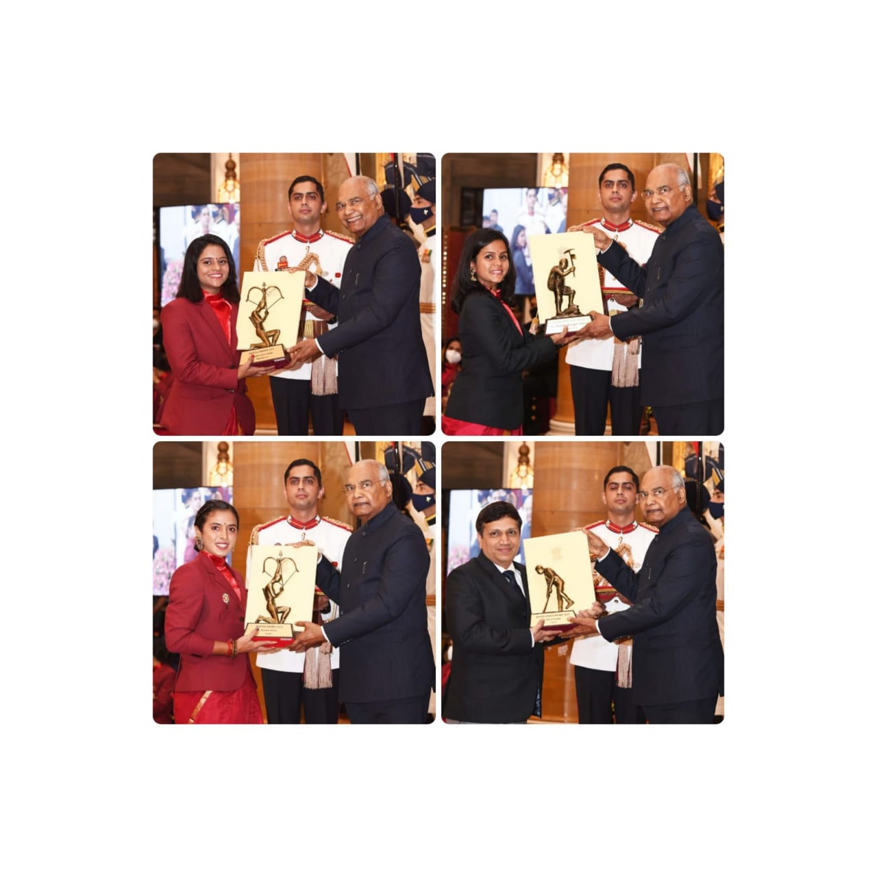केंद्रीय युवा कल्याण आणि क्रीडा मंत्रालयाच्यावतीने राष्ट्रपती भवनातील दरबार हॉलमध्ये वर्ष 2021 चे राष्ट्रीय क्रीडा पुरस्कार प्रदान सोहळयाचे आयोजन करण्यात आले. कार्यक्रमात केंद्रीय युवा कल्याण आणि क्रीडा मंत्री अनुराग ठाकुर, केंद्रीय राज्यमंत्री निसिथ प्रमाणिक तसेच वरीष्ठ अधिकारी उपस्थित होते. राष्ट्रपती यांच्या हस्ते राष्ट्रीय क्रीडा पुरस्कार प्रदान करून खेळाडूंना गौरविण्यात आले.