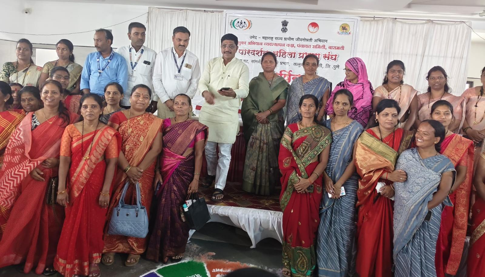 महाराष्ट्र राज्य ग्रामीण जीवनउन्नती अभियान अंतर्गत जिल्हा परिषद पुणे व पंचायत समिती बारामती यांच्या सयुक्ता विद्यमानाने पारदर्शक महिला प्रभागसंघ जि. प गट सांगवी -डोरलेवाडी तालुका बारामती जिल्हा पुणे यांची सनं 2025/26 ची वार्षिक सर्वसाधारण सभा 7/04/26 रोजी वीरशैवं मंगल कार्यालय बारामती येथे संपन्ना झाली.
