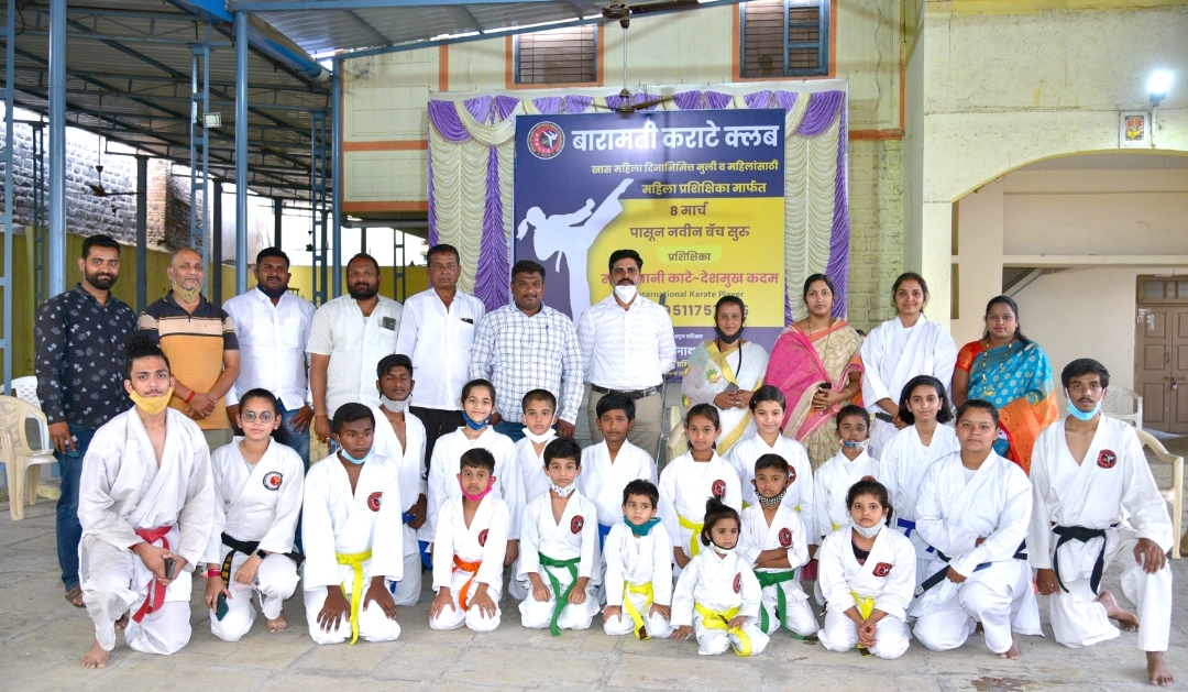 जागतीक महिला दिननिमित्त बारामती कराटे क्लब चा कौतुकास्पद उपक्रम खास मुली व महिलांसाठी इंटरनॅशनल कराटे महिला प्लेयर मार्फत प्रशिक्षण या कार्यक्रमाची सुरवात dysp नारायण शिरगावकर यांच्या हस्ते श्री फळ फोडून करण्यात आली या क्लब च्या विद्यार्थ्यांनी धाडाकेबाज प्रात्यक्षिक दाखवले