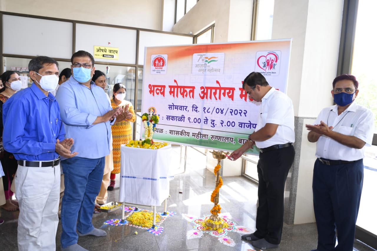 स्वातंत्र्याच्या अमृत महोत्सवी वर्षानिमित्त आरोग्य व कुटुंब कल्याण मंत्रालय भारत सरकार व राष्ट्रीय आरोग्य व सार्वजनिक आरोग्य विभाग महाराष्ट्र शासन यांच्या निर्देशानुसार महिला रुग्णालय बारामती येथे तालुकास्तरीय मोफत आरोग्य मेळाव्याचे सोमवारी आयोजन करण्यात आले.