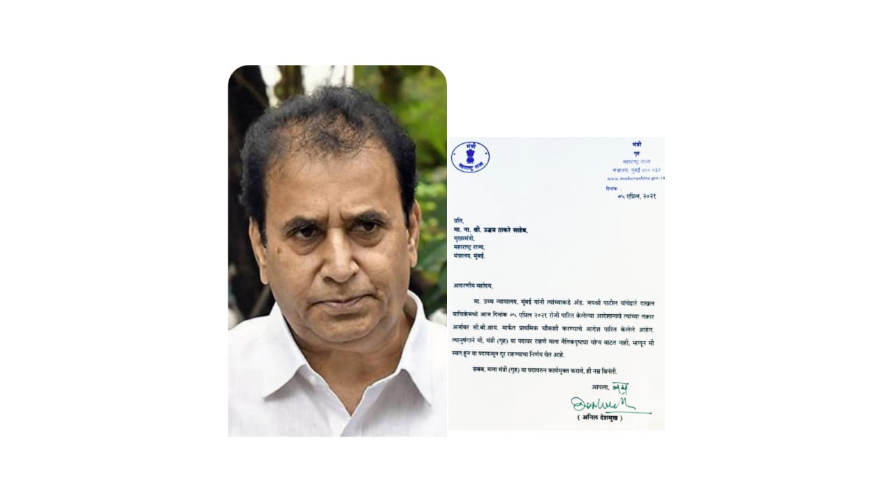 मुंबई हायकोर्टाच्या आदेशानंतर अनिल देशमुख यांनी राजीनामा पत्र मुख्यमंत्री उद्धव ठाकरे यांच्याकडे