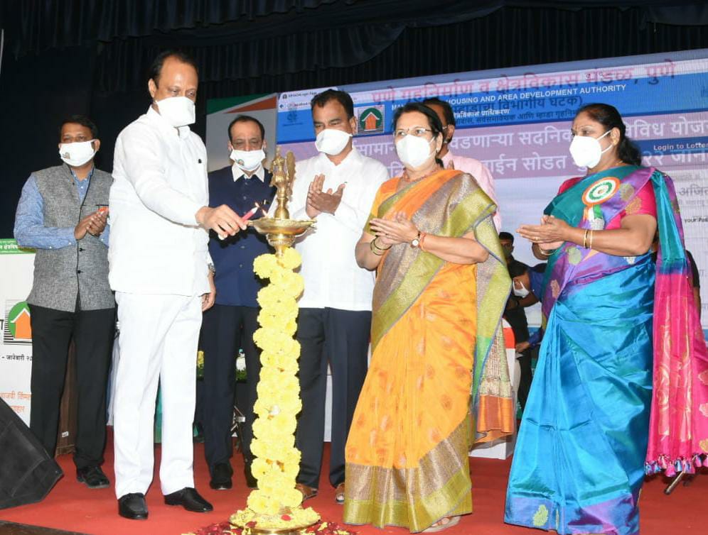 उपमुख्यमंत्री अजित पवार यांच्या प्रमुख उपस्थितीत पुणे गृहनिर्माण व क्षेत्रविकास मंडळ (म्हाडाचा विभागीय घटक) पुणे विभागाच्या कार्यक्षेत्रात येणाऱ्या पुणे, सोलापूर, कोल्हापूर व सांगली येथील विविध योजनेतील एकूण ५ हजार ६४७ सदनिकांच्या सोडतीचा संगणकीय ऑनलाईन उद्घाटन समारंभ नेहरु मेमोरियल सभागृहात आयोजित करण्यात आला होता. यावेळी विधान परिषदेच्या उपसभापती नीलम गोऱ्हे, सार्वजनिक बांधकाम राज्यमंत्री दत्तात्रय भरणे, आमदार अशोक पवार, उपमहापौर सरस्वती शेंडगे, मुंबई इमारत दुरुस्ती व पुनर्रचना मंडळाचे सभापती विनोद घोसाळकर यांच्यासह संबंधित विभागाचे वरिष्ठ अधिकारी उपस्थित होते.