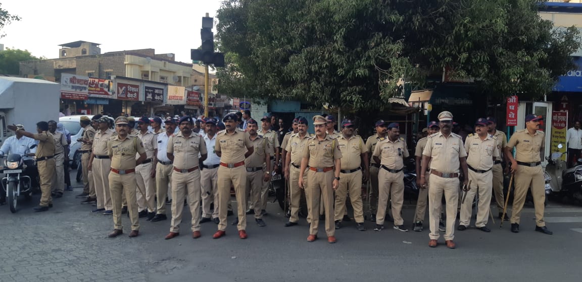 आठ अधिकारी 25 पोलीस कर्मचारी आर सि पी दोन पथक होमगार्डचे 11 जवान यांनी संचलनात भाग घेतला.