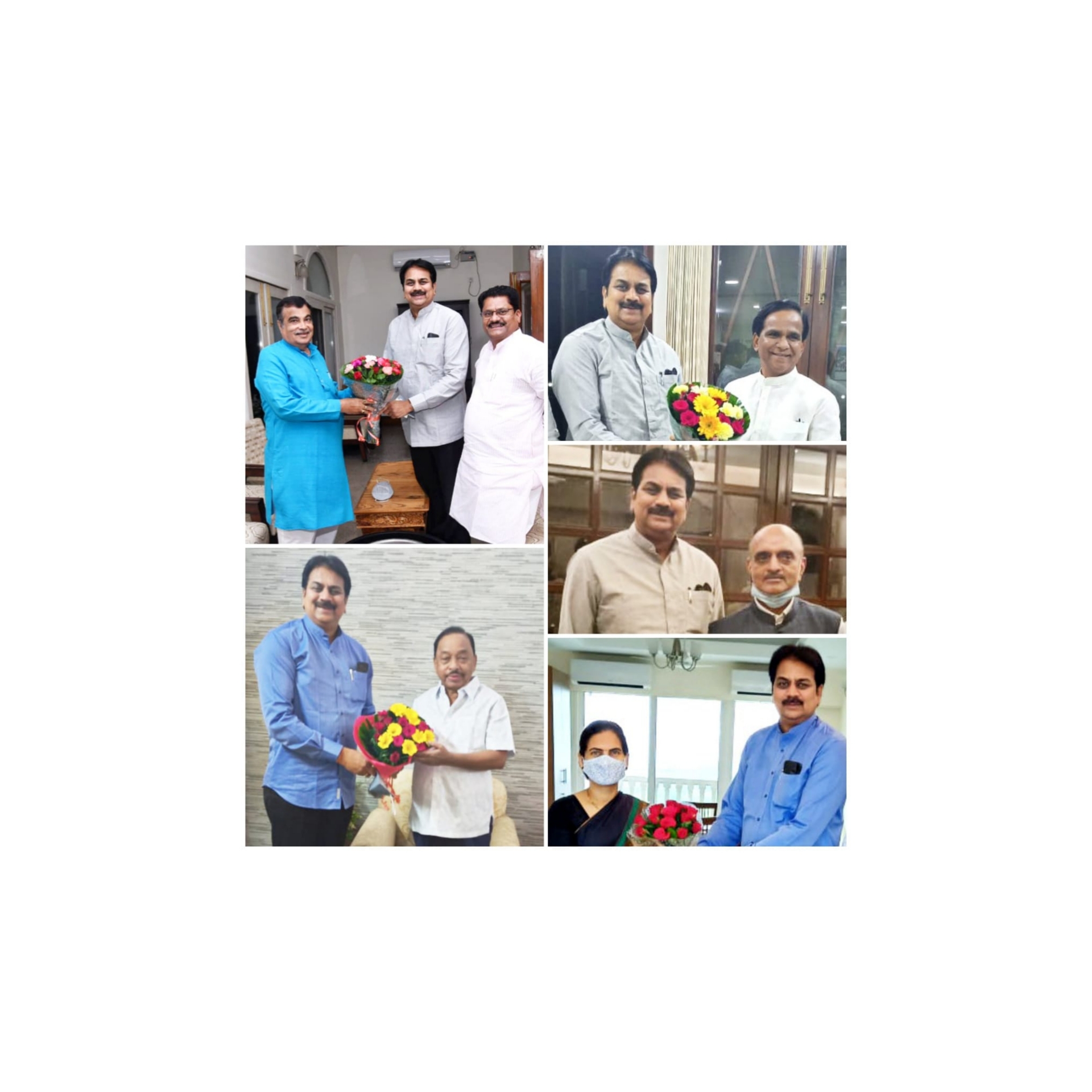 नवी दिल्ली येथे बुधवार व गुरुवारी (दि.१५) हर्षवर्धन पाटील यांनी भाजपचे ज्येष्ठ नेते व केंद्रीय रस्ते वाहतूक व महामार्ग मंत्री नितीन गडकरी, महाराष्ट्राचे माजी मुख्यमंत्री व सूक्ष्म, लघु व मध्यम उद्योग मंत्री नारायण राणे, भाजपचे माजी प्रदेशाध्यक्ष व रेल्वे, कोळसा व खाण राज्यमंत्री रावसाहेब दानवे, केंद्रीय अर्थराज्यमंत्री डॉ. भागवत कराड, केंद्रीय आरोग्य व कुटुंबकल्याण राज्यमंत्री डॉ. भारती पवार या नूतन केंद्रीय मंत्र्यांची भेट घेऊन शुभेच्छा दिल्या.
