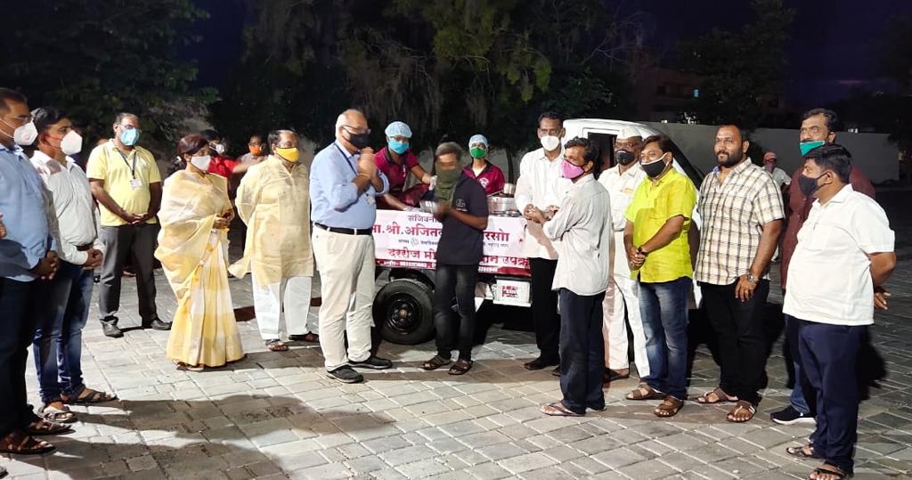 महाराष्ट्र राज्याचे उपमुख्यमंत्री अजित पवार यांच्या 61 व्या वाढदिवसानिमित्त संजीवनी ग्रुप चे सचिन शाहिर व दिपक शाहीर यांचे कडून गरजू ना दररोज मोफत फिरत्या गाडी मधून भोजन वाटप करण्याचा कार्यक्रम तालुकाध्यक्ष संभाजी होळकर ,बा.न.प गटनेते सचिन सातव ,प्रताप गालिंदें,नगरसेवक जयसिंग देशमुख, नगरसेविका अश्विनी कुणाल गालिंदे,जी. टी.एन स्पीनिंग मिल्स चे जनरल मॅनेजर उद्धवशंकर मिश्रा,बारामती तालुका खरेदी विक्री संघाचे चेअरमन शिवाजीराव टेंगले, मा.नगरसेवक निलेश इंगुले,मा.नगरसेवक संतोष गालिंदे व इतर मान्यवर यांच्या हस्ते सुरू करण्यात आला असून गरजूनी याचा लाभ घ्यावा असे आवाहन यांच्या माध्यमातून करण्यात येत आहे.