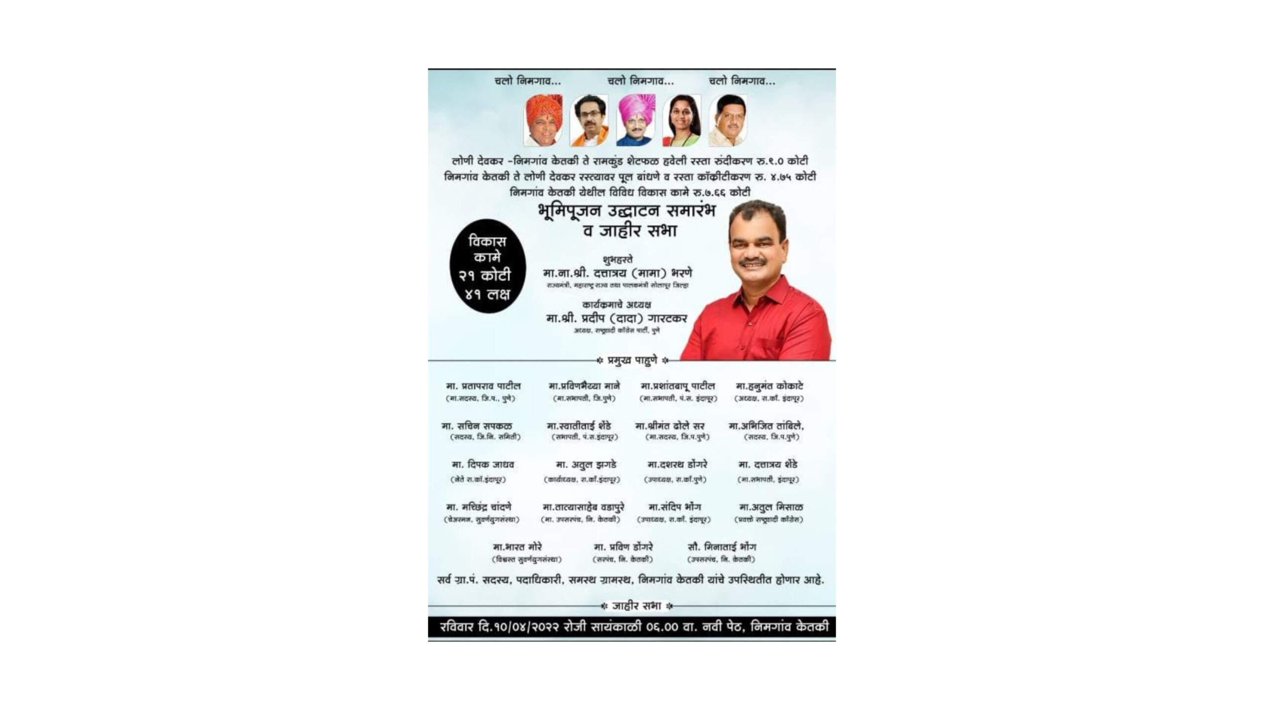 राज्यमंत्री दत्तात्रय भरणे यांच्या हस्ते निमगाव केतकीत उद्या २१ कोटी ४१ लाख रुपयांच्या विविध विकास कामांचे भूमिपूजन व उद्घाटने