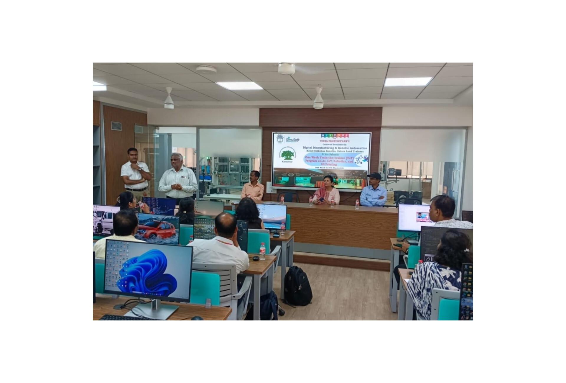 सिम्युसॉफ्ट कंपनीचे संचालक श्री. सुनील चोरे आणि त्यांच्या तंत्रज्ञांनी सर्व प्रशिक्षणार्थींना प्रशिक्षण दिले.
