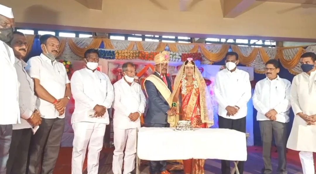 विवाह समारंभात अक्षदा पडण्याच्या अगोदर नवरा नवरी ने उपमुख्यमंत्री अजित पवार यांचा वाढदिवस केक कापून केला साजरा..