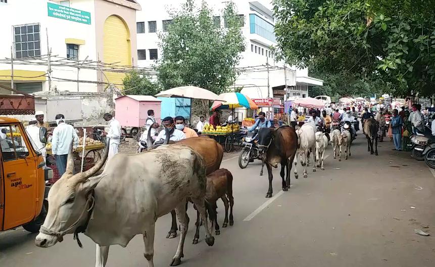 जनावरे रस्त्यावर,प्रशासनाचे दुर्लक्ष.