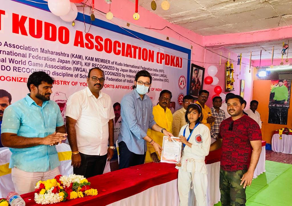 शिवजयंती निमित्त घेण्यात आलेल्या ज्युदो, कराटे स्पर्धेतील यशस्वी विद्यार्थ्यांचा राजवर्धन पाटील यांच्या हस्ते गौरव