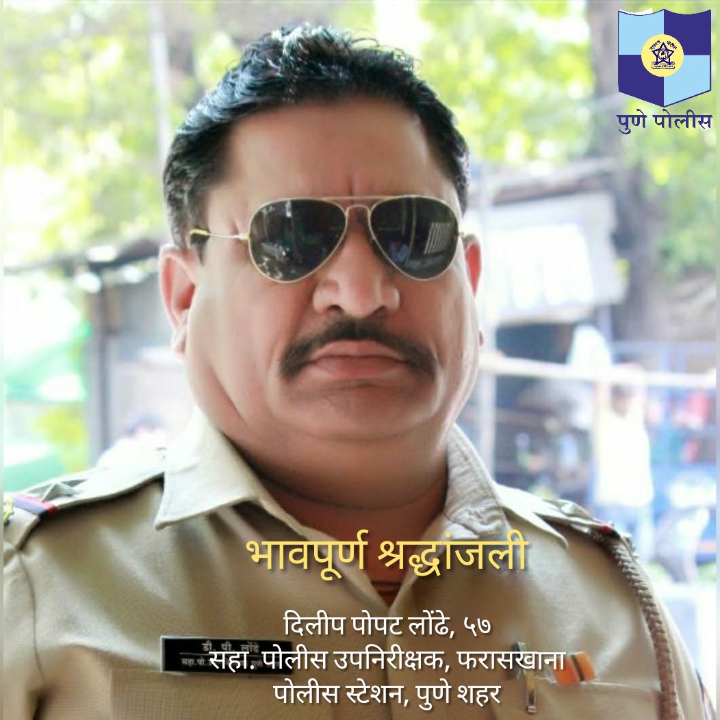 फरासखाना पोलीस स्टेशनचे सहा.पोलीस उपनिरीक्षक श्री दिलीप पोपट लोंढे, ५७ यांचं कोरोनाशी झुंज देताना दुःखद निधन झालं आहे.त्यांच्या आत्म्याला शांती मिळो.
