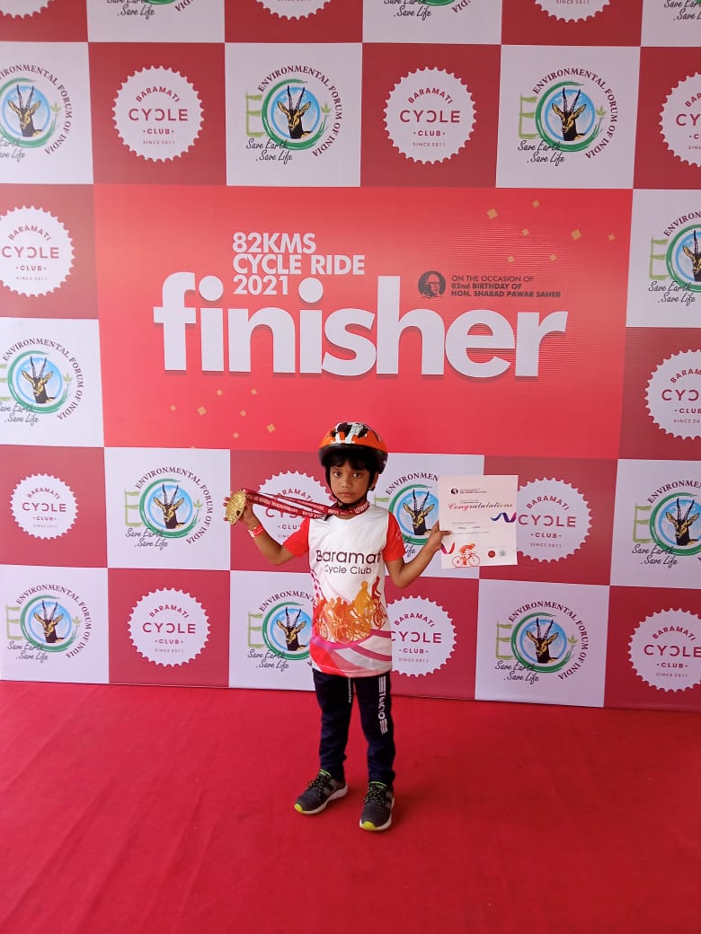 सहा वर्षाच्या अनय वारे याने 82 किलोमीटर सायकलिंग स्पर्धा पूर्ण केली