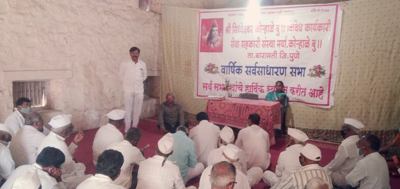 बारामती तालुक्यातील अग्रगण्य समजल्या जाणाऱ्या कोराळे बुद्रुक येथील सिद्धेश्वर विकास सोसायटीने या वर्षी सभासदांना दहा टक्के लाभांश देण्याचे जाहीर केले आहे. गुरुवार (दि:३०) सप्टेंबर रोजी झालेल्या वार्षिक सभेमध्ये हा निर्णय घेण्यात आला. यावेळी सभेच्या अध्यक्षस्थानी संस्थेच्या चेअरमन वंदना भगत या होत्या. संस्थेच्या गोडाउन मध्ये ही सभा खेळीमेळीच्या वातावरणात पार पडली