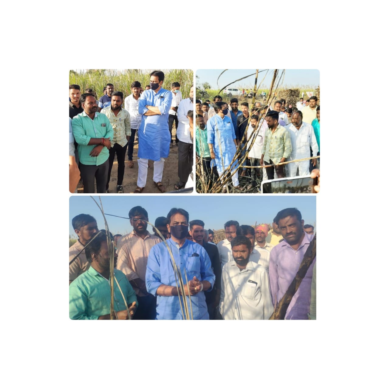 हर्षवर्धन पाटील यांचेकडून वरकुटे बु. येथील जळीत ऊस पिकाची पाहणी