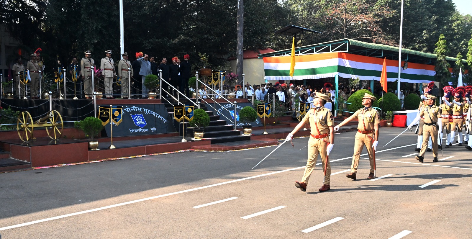 यावेळी आमदार बापुसाहेब पठारे, विभागीय आयुक्त डॉ. चंद्रकांत पुलकुंडवार, पुणे महानगरपालिका आयुक्त डॉ. राजेंद्र भोसले, पुणे पोलीस आयुक्त अमितेश कुमार, पिंपरी चिंचवड पोलीस आयुक्त विनय कुमार चौबे, पिंपरी-चिंचवड महानगरपालिकेचे आयुक्त शेखर सिंह, ‘पीएआरडीए’चे मुख्य कार्यकारी अधिकारी योगेश म्हसे, जिल्हाधिकारी जितेंद्र डुडी, जिल्हा परिषदेचे मुख्य कार्यकारी अधिकारी गजानन पाटील, पोलीस अधीक्षक पंकज देशमुख, स्वातंत्र्यसैनिक यांच्यासह वरिष्ठ प्रशासकीय अधिकारी, विविध विभागांचे वरिष्ठ अधिकारी-कर्मचारी, ज्येष्ठ नागरिक, विद्यार्थी आणि नागरिक उपस्थित होते.