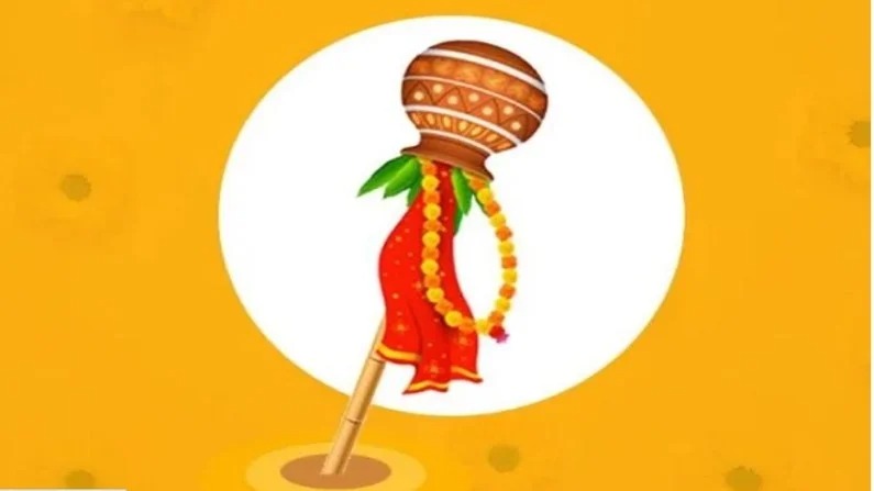 🔸 काठीला कडुलिंबाची डहाळी आंब्याची पाने, फुलांचा हार, साखरेची गाठी बांधून त्यावर तांबा,