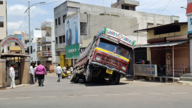 बारामती शहरात युरीयाचा ट्रक नविनच काम केलेल्या चेंबर मध्ये अडकला…