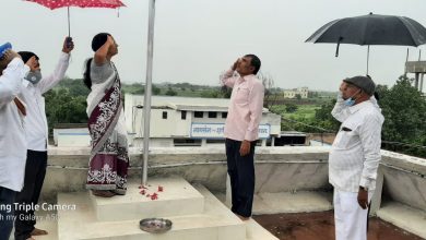 भिमाई आश्रमशाळेत रिमझिम पावसात ध्वजारोहण कार्यक्रम संपन्न.