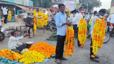 विजयादशमी-दसऱ्याच्या मुहूर्तावर इंदापूरमध्ये झेंडू खरेदीसाठी झुंबड