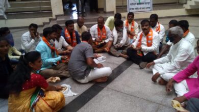 इंदापूर तहसील कार्यालयात पिठलं भाकरी वाटून भाजपा कार्यकर्त्यांनी नाेंदवला महाविकास आघाडी सरकारचा निषेध