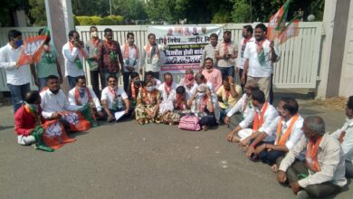 ग्राहकांच्या वीज बिल माफी संदर्भात वीज बिलांची होळी करत भाजपचे बारामती महावितरण कार्यालया समोर आंदोलन