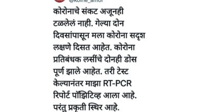 कोरोना लसीचे दोन्ही डोस पूर्ण होऊनही खासदार अमोल कोल्हे यांना कोरोनाची लागण ट्विट करत त्यांनी ही माहिती दिली आहे. सोबतच…